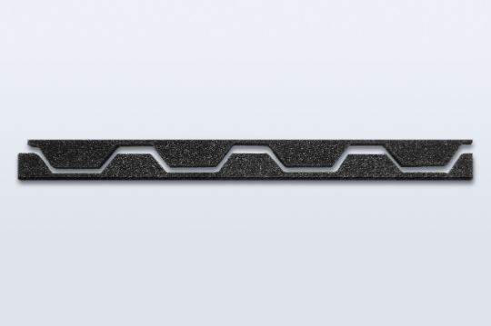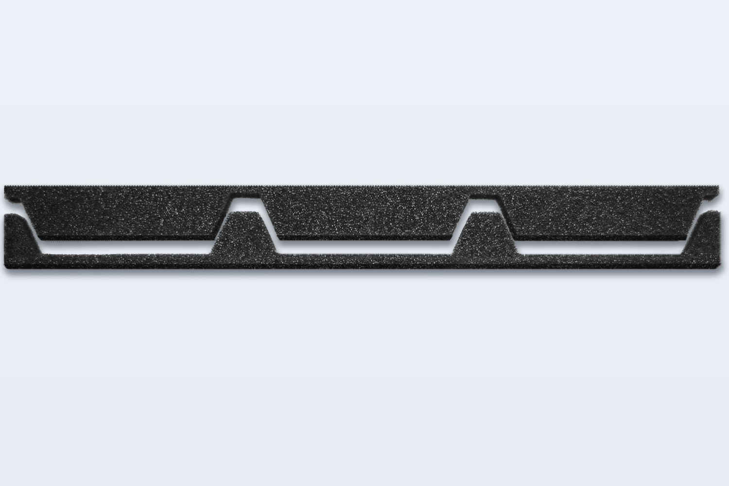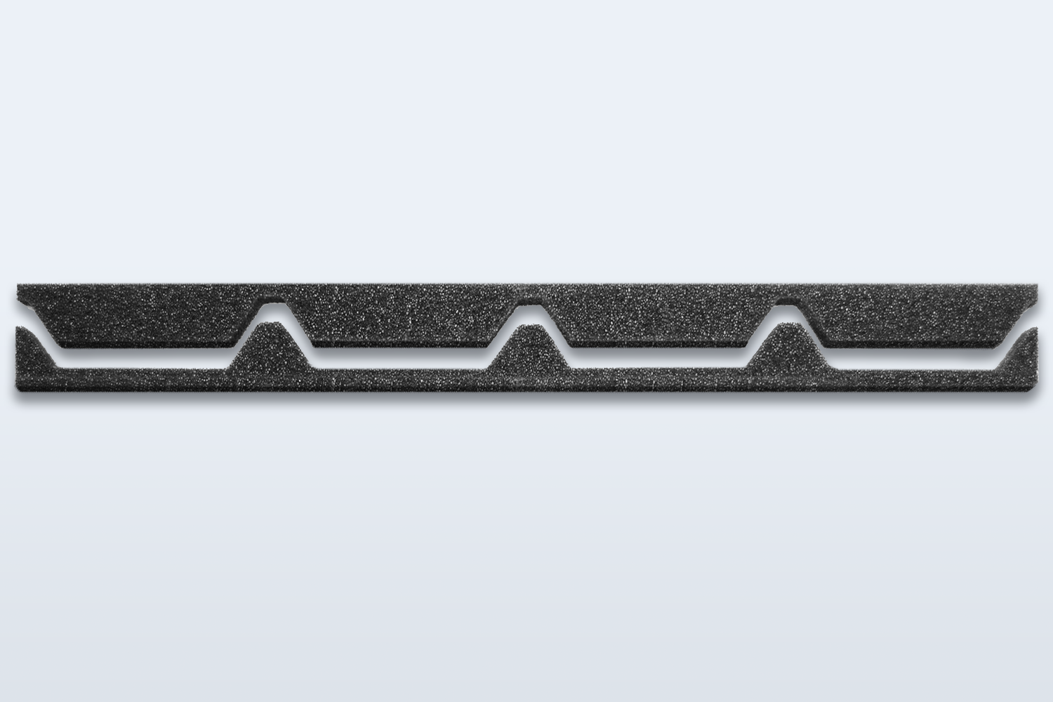 Изготавливается из технического пенополиуретана. Имеет не менее 50% открытых пор, что позволяет вентилировать подкровельное пространство не только через установленные аэраторы, но и через уплотнения под коньковыми элементами.